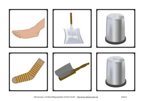 Es heißt ja bekanntlich auch "Ein Bild sagt mehr als tausend Worte", daher haben wir in dieser Aktivierung anstatt der Begriffe der Gegenstände nunmehr 36 Kärtchen mit 18 Bildpaaren bereitgestellt. Jedes Bild stellt eines von vielen allgemeinen Dingen dar, die wir alle, also auch die (demenzkranken) Senioren unter uns, tagtäglich verwenden oder verwendet haben. Nach dem Ausschneiden der Kärtchen ist es die Aufgabe der Senioren, auch mit Alzheimer oder Demenz, zu kommunizieren, welche von den 36 Kärtchen mit Bildern von allgemeinen Dingen am besten zusammenpassen. Besprechen Sie beim zusammensuchen mit Ihren Senioren auch WARUM ihrer Meinung nach diese Gegenstände zusammenpassen.